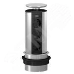 Вертикальный настольный бокс с соединительным кабелем, для фиксированного монтажа в столешнице, пластиковая крепежная манжета окрашена в цвет крышки. Монтаж выполняется через отверстие в столешнице 102 мм. Комплектация: - с 3 розетками 60 с защитным контактом, черного цвета, с сетевым кабелем 3,0 м угловым штекером CEE 7/7. Бокс устанавливается только в столешницах толщиной не более 50 мм.