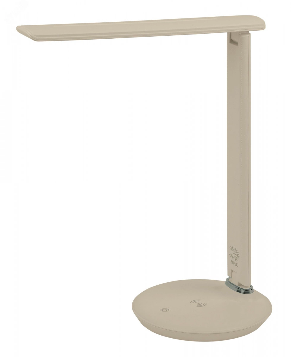 Настольный светильник ЭРА NLED-504-10W-BG со светодиодами (LED) в качестве источников света в дизайне `под кожу`. Удобная складная конструкция с сенсорным управлением, возможностью выбора цветовой температуры и плавным диммером для регулировки яркости. Светильник имеет встроенный модуль Qi для беспроводной зарядки мобильных устройств. Просто положите телефон, поддерживающий функцию Qi на основание светильника в отмеченной зоне - светильник подзарядит его.