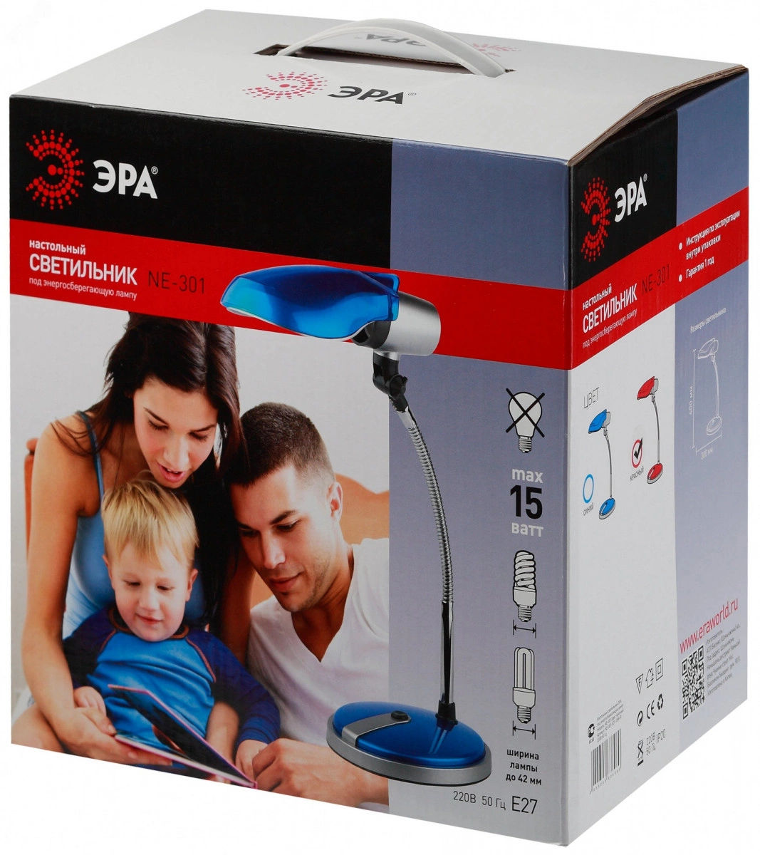 ЭРА NE-301 - настольный светодиодный светильник, к которому подходят как компактные люминесцентные лампы (КЛЛ), так и светодиодные (диаметром до 42 см). Устойчивое металлическое основание. Направление регулируется несколькими способами для максимального комфорта.
