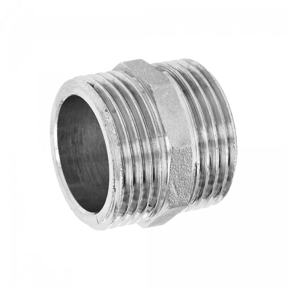 Ниппель (наруж.-наруж.) — латунный фитинг, представляющий собой изделие с наружной резьбой на обоих концах, с помощью которых он соединяется с другими участками трубопровода равного диаметра, резьба цилиндрическая трубная по ГОСТу 6357-81. Предусмотрен участок корпуса шестигранной формы, под гаечный ключ. Фитинги рассчитаны на рабочее давление (PN) 2,5 и 4,0 МПа и температуру транспортируемых сред от -20 до +150 градусов.