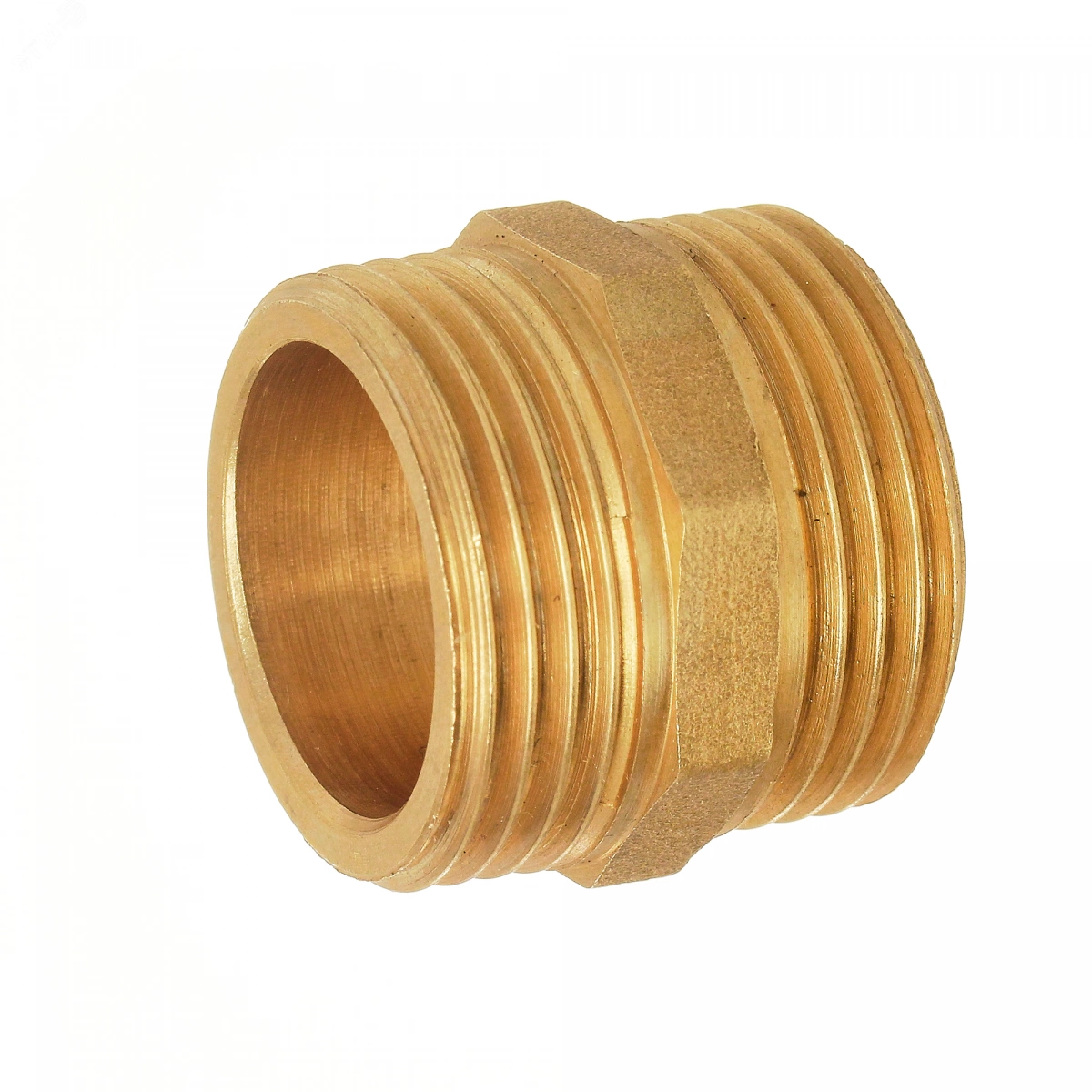 Ниппель (наруж.-наруж.) — латунный фитинг, представляющий собой изделие с наружной резьбой на обоих концах, с помощью которых он соединяется с другими участками трубопровода равного диаметра, резьба цилиндрическая трубная по ГОСТу 6357-81. Предусмотрен участок корпуса шестигранной формы, под гаечный ключ. Фитинги рассчитаны на рабочее давление (PN) 2,5 и 4,0 МПа и температуру транспортируемых сред от -20 до +150 градусов.