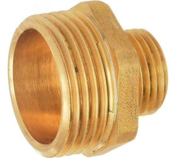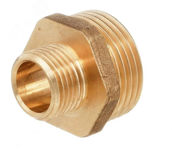 Ниппель переходной (наруж.-наруж.) — фитинг, представляющий собой изделие с наружной резьбой на обоих концах, с помощью которых он соединяется с другими участками трубопровода разного диаметра, резьба цилиндрическая трубная по ГОСТу 6357-81. Предусмотрен участок корпуса шестигранной формы, под гаечный ключ, что облегчает монтаж соединения.