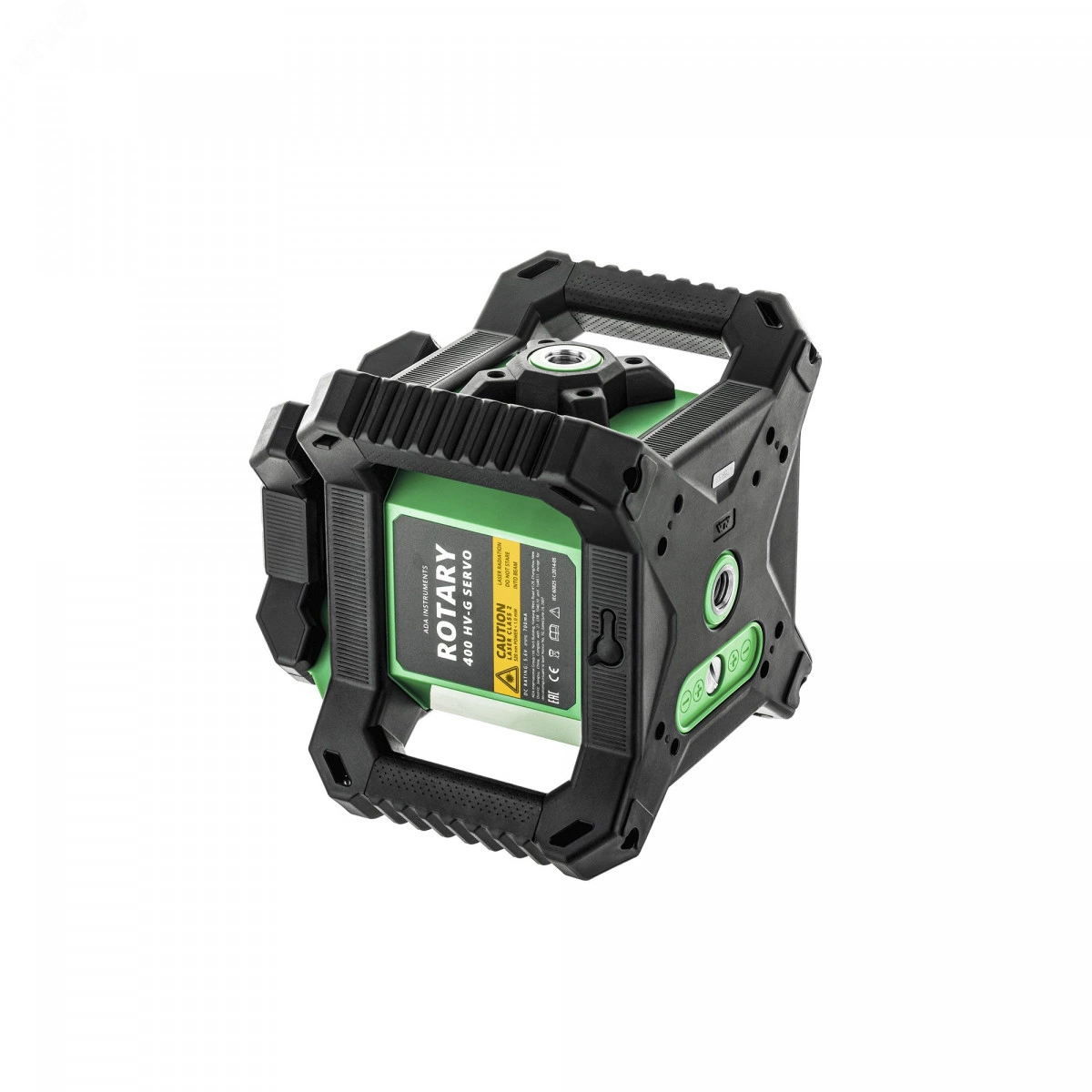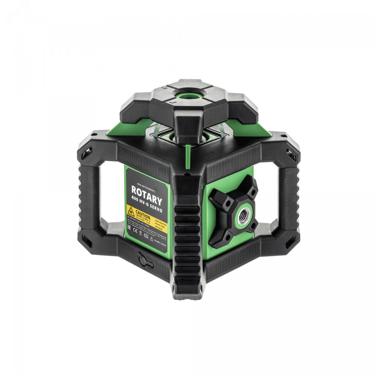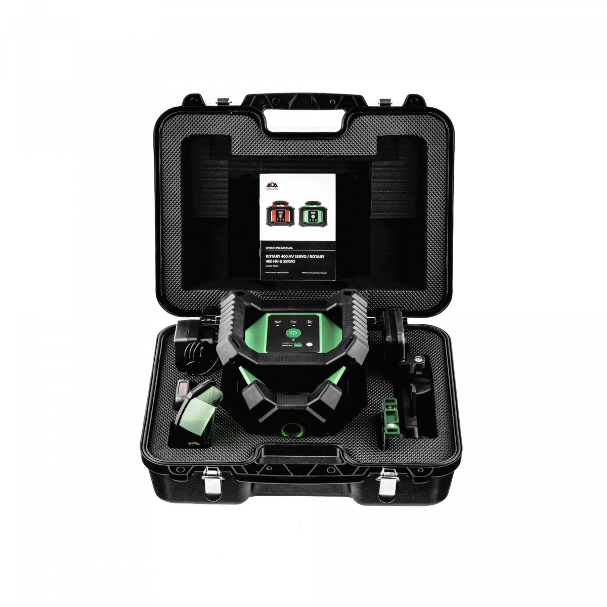 Лазерный уровень ADA ROTARY 400 HV-G Servo — это строительный ротационный уровень с ярким зеленым лучом оборудованный электронным компенсатором на сервоприводах. Сервоприводы обеспечивают точность - ±0,15 мм/м и диапазон компенсации наклона до ± 5 градусов. При разгоризонтировании прибора в случае случайного толчка прибор останавливает работу и производит выравнивание сервоприводами, после чего продолжает работу далее. Функция регулировки угла наклона прибора в плоскости Х и Y до 5 градуса позволяет производить планирование уклонов в горизонтальной плоскости по всем направлениям. Скорость вращения лазерного излучателя регулируемая - от 0 до 600 об/мин. Чем выше скорость, тем чаще лазерная точка проходит на большом расстоянии от лазерного уровня через рейку или приемник. Для работы без приемника комфортнее использовать медленную скорость.