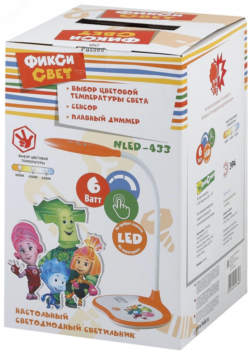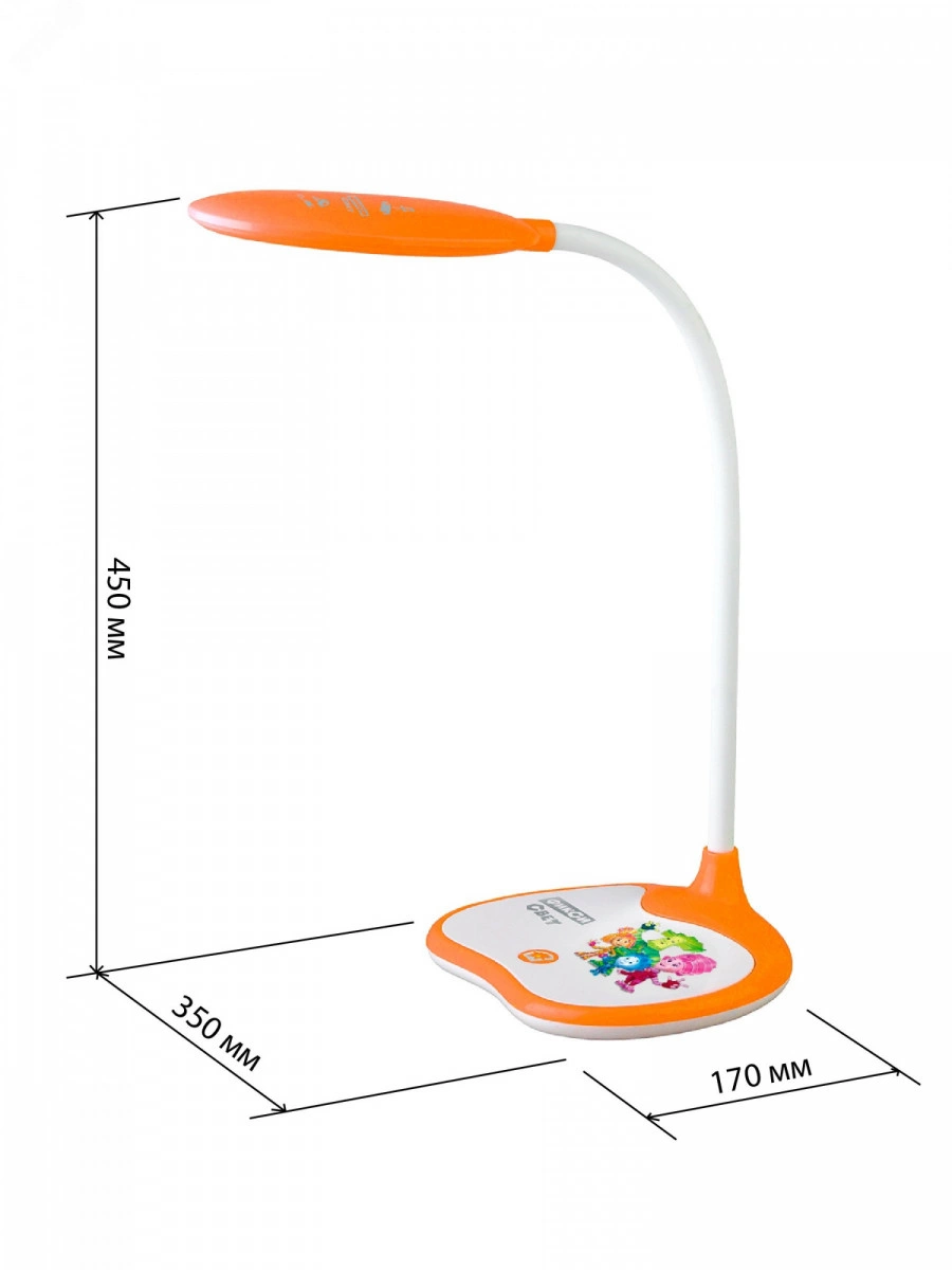 Настольный светильник ЭРА NLED-433-6W-OR серии ФИКСИКИ, созданной по мотивам популярного современного мультфильма. Светильник оснащен сенсорным управлением и возможностью выбора цветовой температуры (теплый, нейтральный или холодный свет). Яркость регулируется при помощи плавного диммера. Плафон наклоняется и поворачивается в любом направлении для максимального комфорта при использовании. Устойчивое основание. Этот современный настольный светильник оценит ребенок, интересующийся гаджетами и новыми технологиями. То есть практически каждый ребенок! Уроки будут делаться с удовольствием!