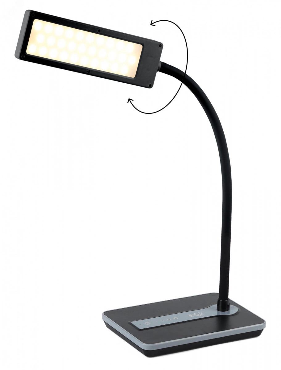 Настольный светильник ЭРА NLED-446-9W-BK со светодиодами (LED) в качестве источников света. Оснащен сенсорным управлением c возможностью регулировки яркости освещения, 4 уровня. Есть регулировка яркости освещения, 4 уровня. Гибкая стойка позволяет настраивать комфортную высоту плафона и направлять свет под любым углом. Современный актуальный дизайн в стиле хай-тек с серыми вставками.