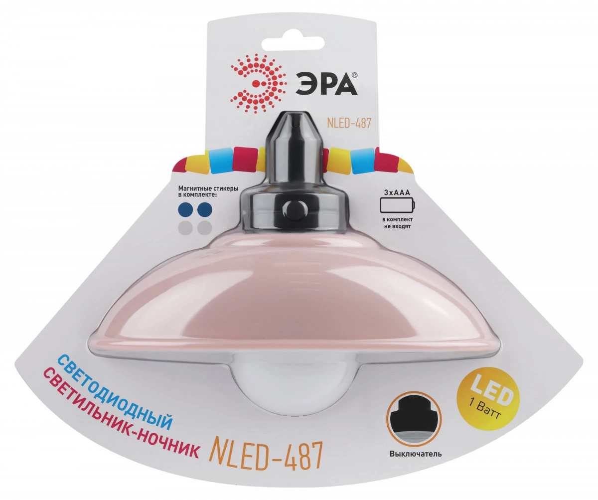 Ночник - светильник светодиодный NLED-487-1W-SW-P настенный на батарейках с выключателем розовый