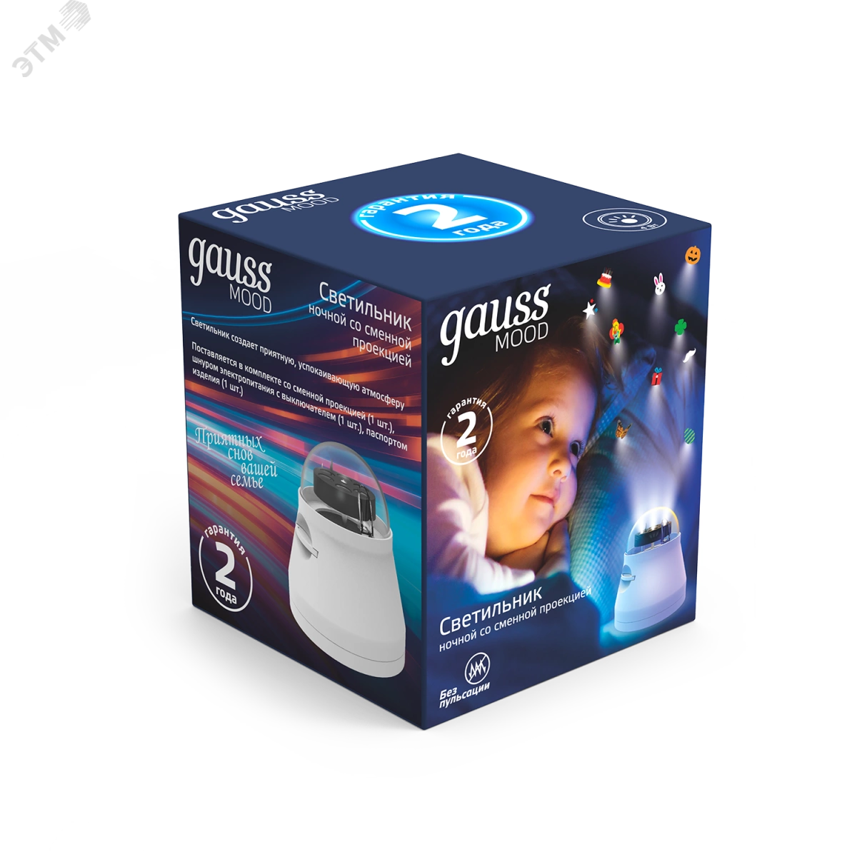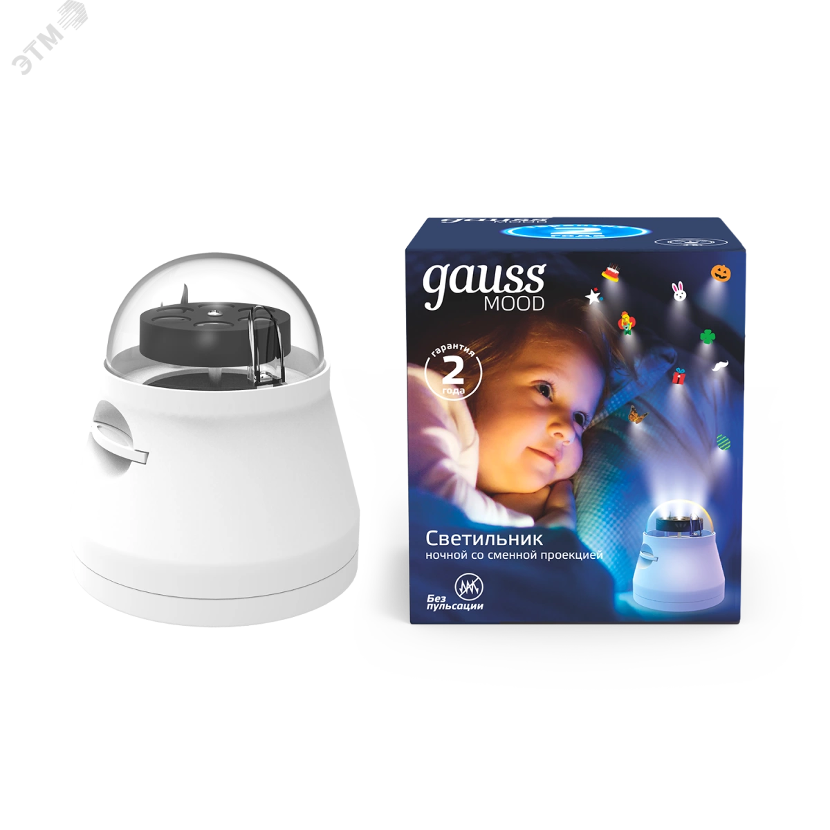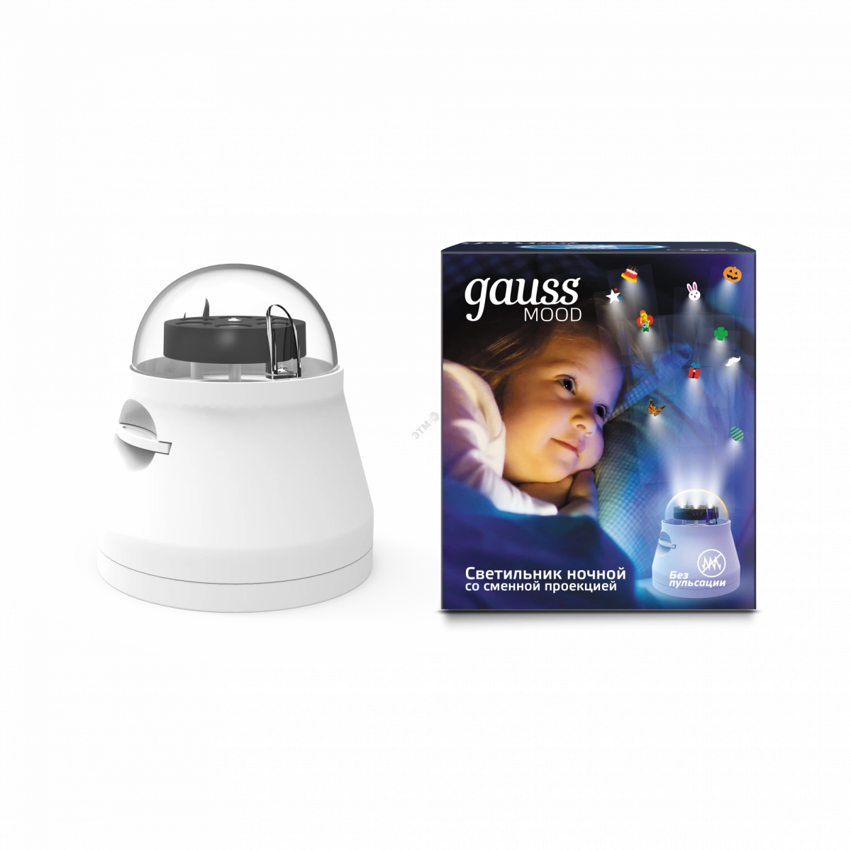 Ночник светодиодный со сменной проекцией,выкл, 4Вт, белый Gauss