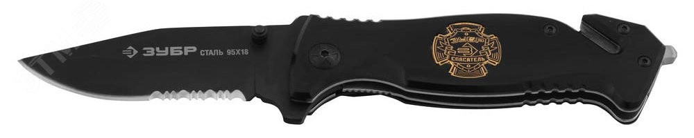 Нож ''ЭКСПЕРТ'' СПАСАТЕЛЬ складной, серрейтор. заточка, наконечник д/стекол,резак,200мм/лезвие 90мм