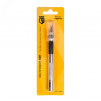 Предназначен для художественных работ (рез ткани, картона, кожи, заготовок из резины или пластика и т.д.). Перовое лезвие с возможностью быстрой замены. Ширина лезвия - 8мм. Материал лезвий - инструментальная сталь. Металлическая рукоятка с нескользящей вставкой. На рукоятке нанесена накатка для удобства использования. Вес - 28г. Длина - 155мм