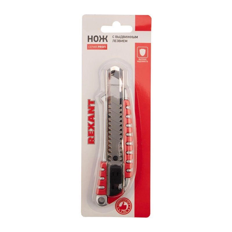 Нож с выдвижным лезвием REхANT — отличный помощник для реза различных материалов: пластика, линолеума, кровельных материалов, гипсокартонных и гипсолитовых плит, бумаги, картона.