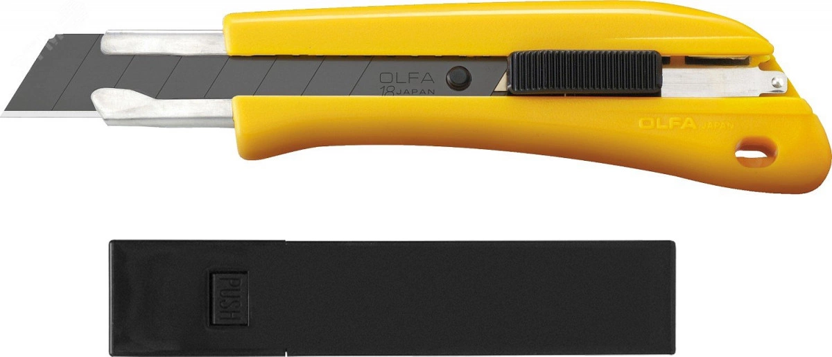 Выберите универсальный нож OLFA 18 мм BN-AL для любых строительных или промышленных задач. Этот нож имеет прочную рукоятку из АБС-пластика с каналом из нержавеющей стали. Этот канал надежно удерживает лезвие, что упрощает работу при самых сложных работах. Эргономичная рукоятка обеспечивает комфорт при использовании в течение всего дня. Оснащен прочным лезвием Silver Snap, которое автоматически фиксируется в одном из нескольких предустановленных положений. Острая кромка всегда рядом - просто отломите использованную часть лезвия для новой кромки. Полная замена лезвия всегда выполняется быстро и без инструментов.