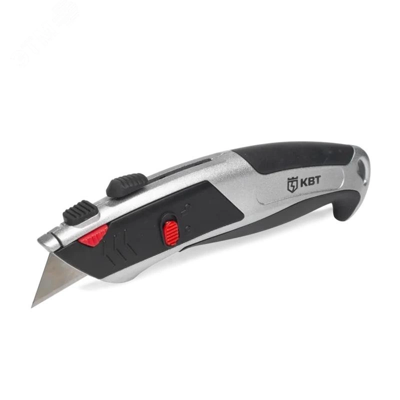 Предназначен для резки тонких строительных материалов (бумага, картон, пластик, резина и т.д.). Выдвижное двустороннее трапециевидное лезвие. Ширина лезвия - 18 мм. Материал лезвия - инструментальная сталь. Система быстрой автозамены лезвий. Отсек для хранения лезвий в корпусе ножа, 7 лезвий в комплекте (1+6 в отсеке хранения). Эргономичный корпус из легкого сплава с нескользящими вставками. Прорезиненный упор для пальца. Отверстие для подвешивания ножа. Вес - 200 г. Длина - 180 мм