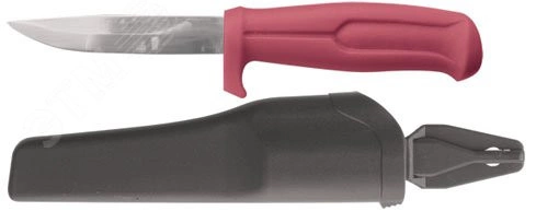 Материал - нержавеющая сталь, пластиковая ручка, пластиковые ножны.