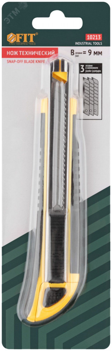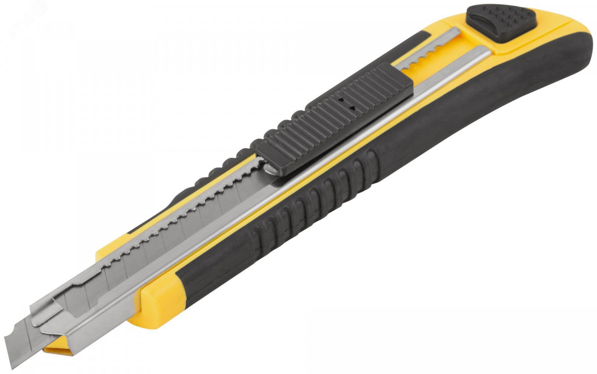 Нож технический 9 мм усиленный прорезиненный, кассета 3 лезвия
