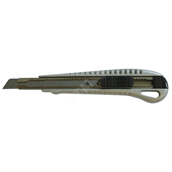 Нож для резки пластика, обоев, картона, кожи, фанеры, ковров автоматический фиксатор. Сменные лезвия 200025/KL.