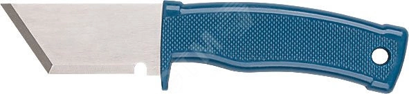 Две режущие кромки. Применяется для резки листовых материалов (кожа, линолеум, резина, шпон, брезент), резьбы по дереву, обрезки веток, ремонта обуви и других изделий. Трапециевидное лезвие со специальной выемкой для удобства при заточке. Антискользящая пластиковая рукоятка. Материал - инструментальная сталь, пластик. Упаковка - блистер.