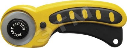С дисковым лезвием. Для разрезания бумаги, картона, линолеума, кожи. Материал - лезвие из высокоуглеродистой стали SK5, ручка из ABS пластика. Упаковка - блистер.
