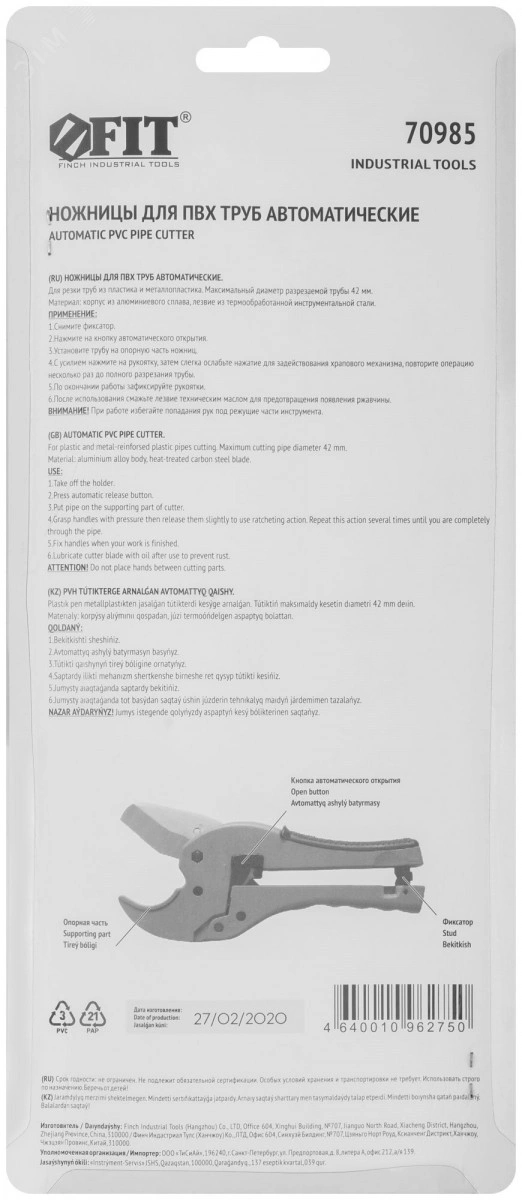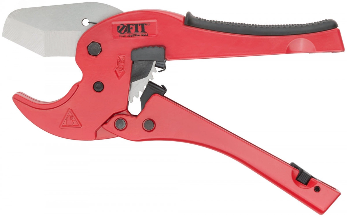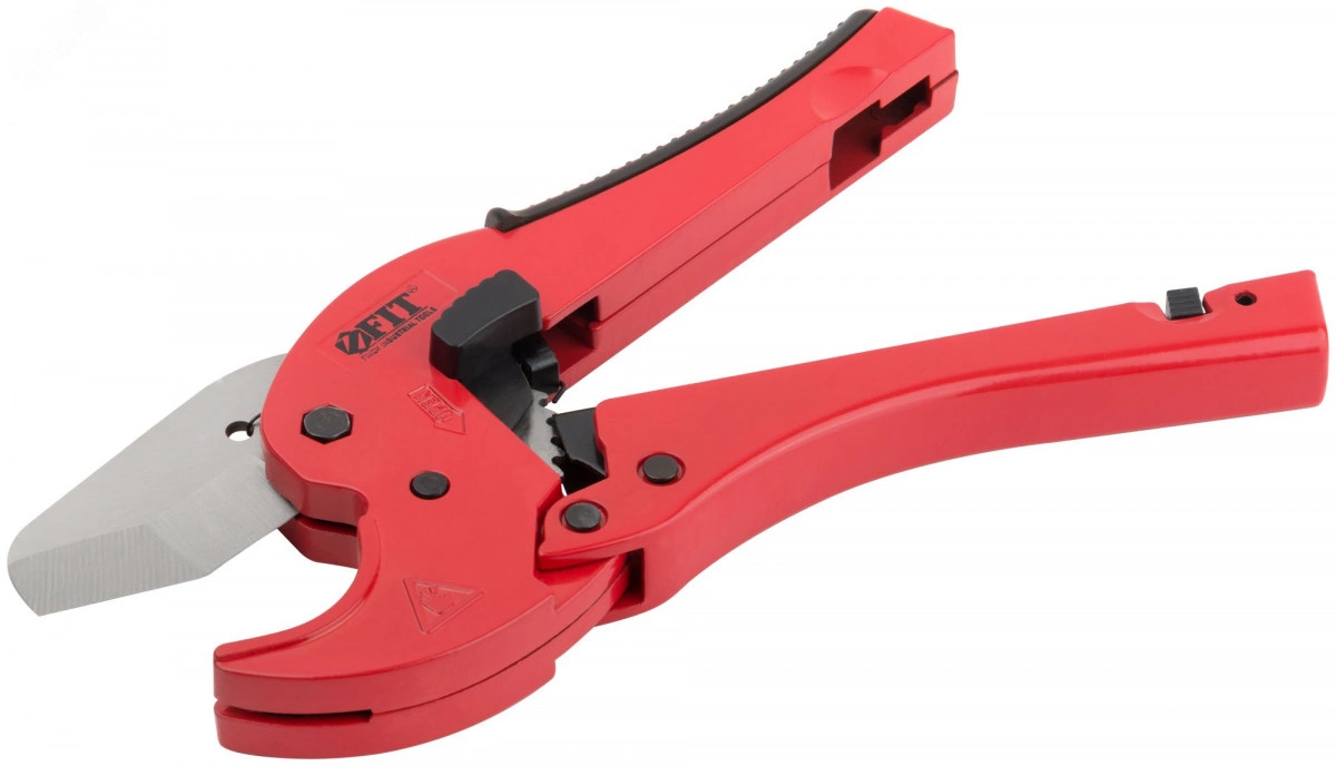 Ножницы для металлопластиковых трубок FIT IT предназначены для резки труб из пластика и металлопластика диаметром до 42 мм. Корпус выполнен из алюминиевого сплава — легкая и удобная конструкция ножниц позволяет качественно и ровно резать трубы одной рукой. Модель оснащена храповым механизмом, который позволяет с легкостью перекусывать даже толстостенные трубки. Специальная форма лезвия предотвращает заминания краев труб. Лезвие изготовлено из качественной нержавеющей стали, поэтому долгое время остаётся острым. Механизм автоматического открытия позволяет легко установить лезвие в стартовом положении.