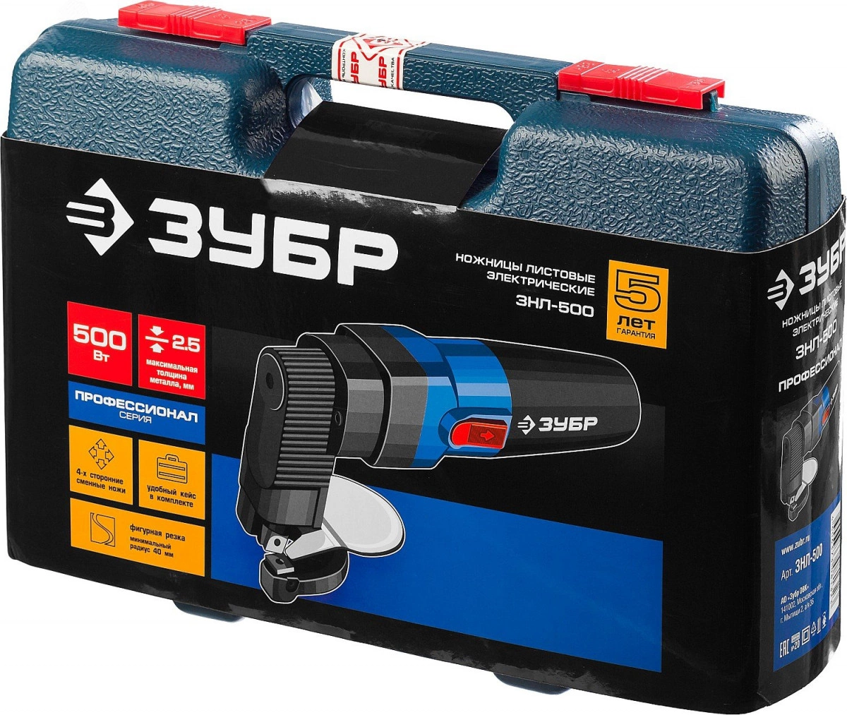 Ножницы по металлу электрические, Профессионал, радиус поворота 40 мм, толщина листа до 2.5 мм, 1800 об/мин, кейс, 500 Вт