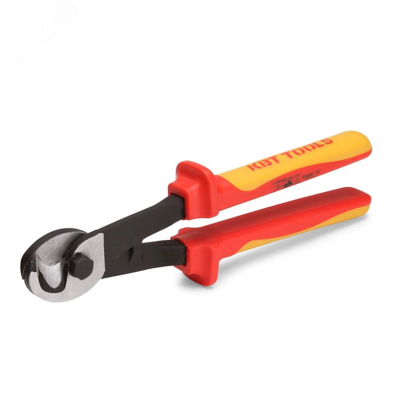 Для работы под напряжением до 1000 В, Режущие кромки закалены токами высокой частоты. HRC 58-64. Диапазон резки - многопроволочные кабели и провода до 14 мм. Благодаря специальной форме и заточке лезвий, усилие при резке на 30% меньше, чем при работе аналогичным инструментом. Материал рабочей части - хром-ванадиевая сталь. Обработка поверхности - воронение. Двухцветные многокомпонентные рукоятки с упорами для защиты от соскальзывания. Вес - 426 г. Длина - 240 мм