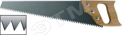 Крупный зуб с запилом (7 ТPI). Двугранная заточка и высокочастотная закалка зубьев. Для распиловки крупных досок и бревен. Материал - высокоуглеродистая инструментальная сталь, пластиковая обрезиненная ручка.