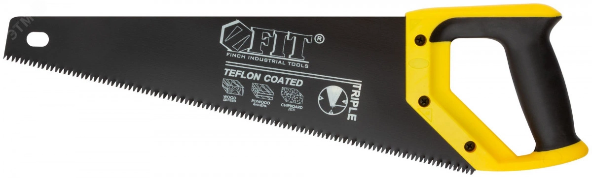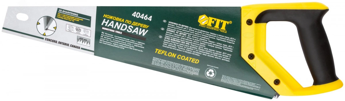 Ножовка по дереву FIT IT арт. 40464 предназначена для пиления деревянных заготовок. Каленые зубья среднего размера с 3D-заточкой обеспечивают высокую скорость реза. Тефлоновое покрытие рабочей части способствует лучшему скольжению полотна в древесине, тем самым увеличивая износостойкость инструмента. Эргономичная двухкомпонентная рукоятка и отверстие для подвеса в полотне обеспечивают удобство использования ножовки.