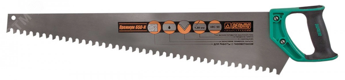 Ножовка по пенобетону ''Дельта''(Премиум), трапециевидное полотно, усиленный зуб, шаг 16 мм, 650 мм