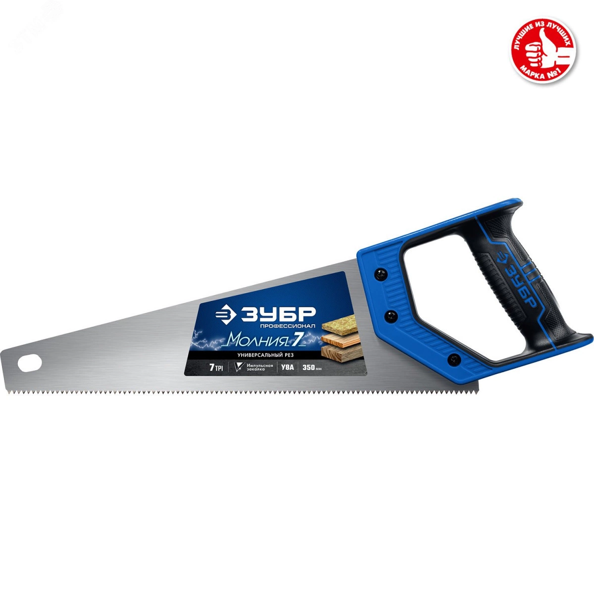 Ножовка универсальная (пила) ''МОЛНИЯ-7'' 350 мм, 7 TPI, закалка, рез вдоль и поперек волокон, для средних заготовок, фанеры, ДСП, МДФ