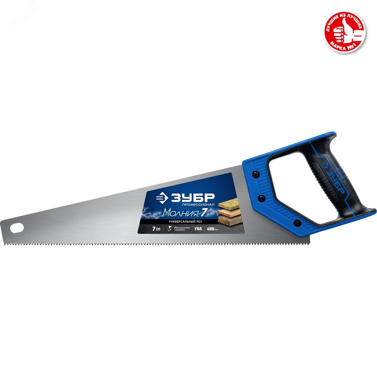 Полное описание: Ножовка универсальная (пила) ''МОЛНИЯ-7'' 400 мм, 7 TPI, закалка, рез вдоль и поперек волокон, для средних заготовок, фанеры, ДСП, МДФ