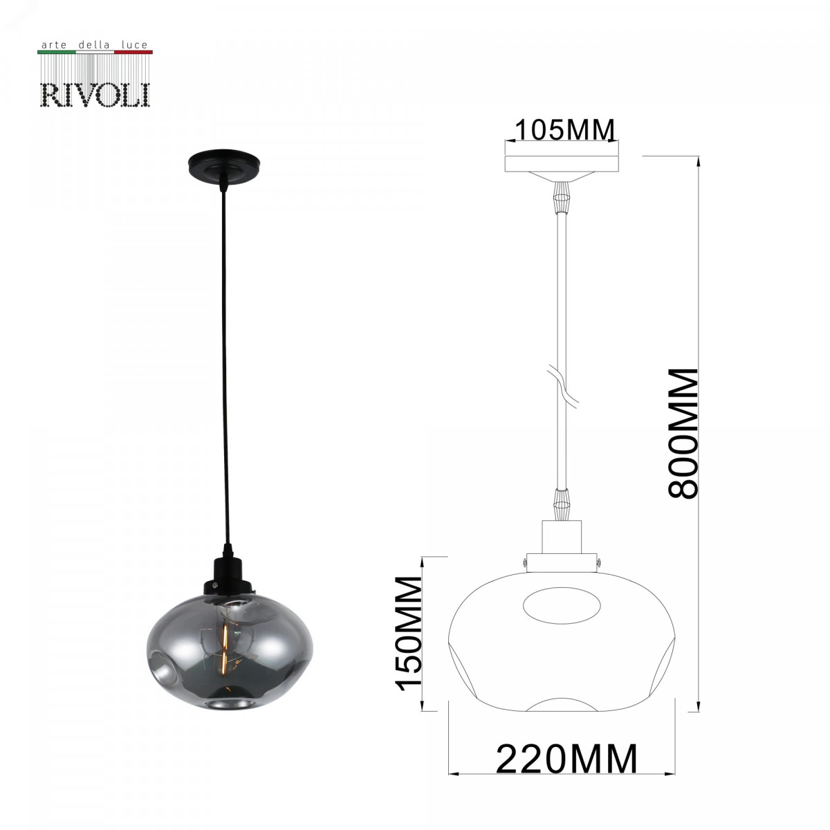 Подвесной светильник Rivoli Sabina (арт. 5134-201) с дымчатым стеклянным абажуром. Светильники потолочные итальянского бренда Rivoli отличаются изысканным дизайном, соответствующим современным трендам оформления интерьеров. Данный подвесной светильник с красивым выдувным плафоном из стекла может применяться как основная люстра или в качестве дополнительного освещения - как подвесной светильник над столом, подвесной светильник над барной стойкой, подвесной светильник в прихожей. Тонированный плафон смягчает световые блики. Трос базового черного цвета может быть отрегулирован по высоте при монтаже подвесного светильника-люстры.