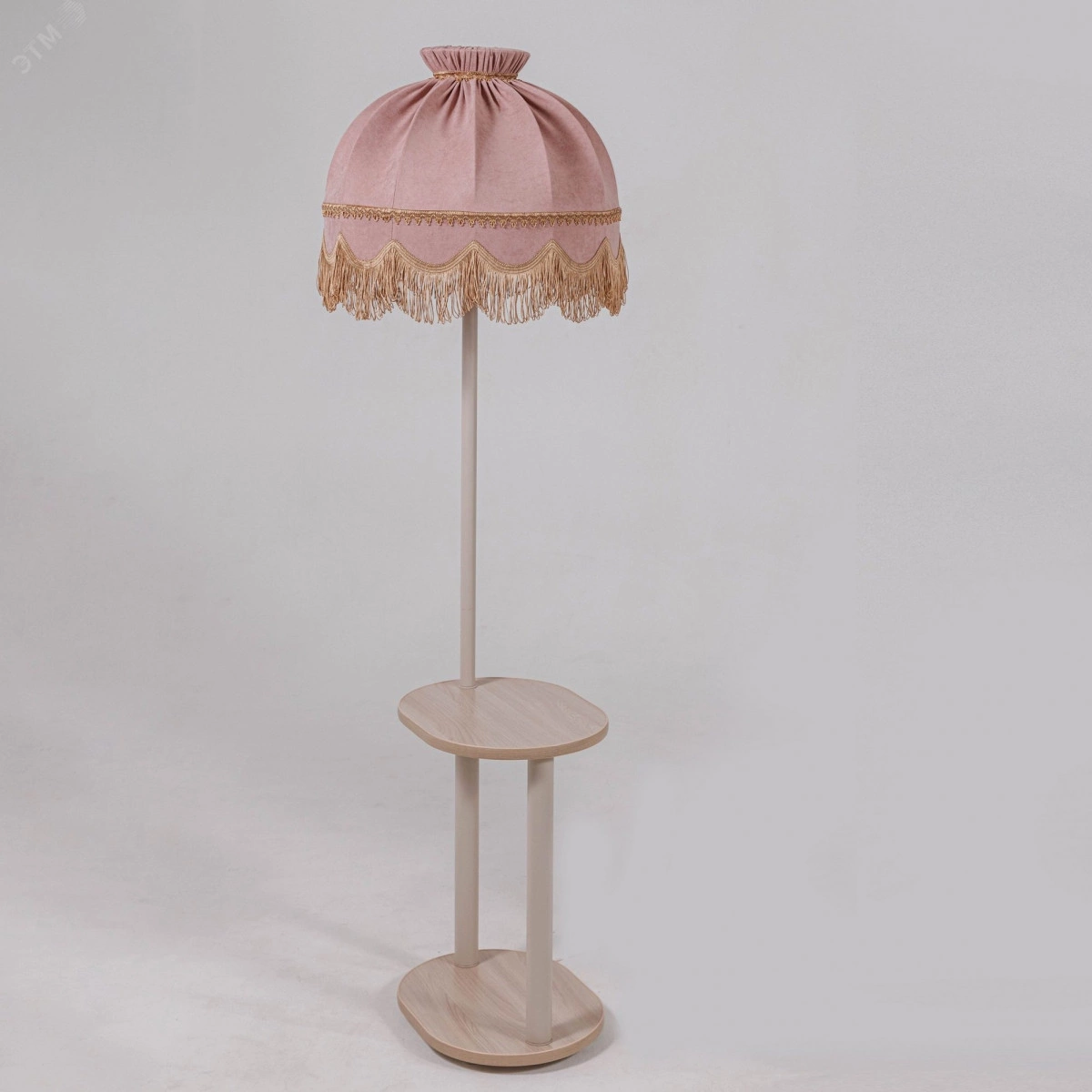 Торшер с овальным столиком и абажуром цвета пыльная роза сделает Ваш интерьер роскошным и элегантным. Габариты – 157*58*49 см, столик овал – 30*40 см. АБАЖУР – из современной ткани канвас, бархатистой на ощупь. Пластичная, она красиво ложится в сборки и драпировки. Идеально подходит для оформления интерьера. Цвет абажура – пыльная роза, мягкий, нeжный, благородный, приглушенный оттенок розового. Абажур декорирован тесьмой и бахромой. СТОЛИК-ОСНОВАНИЕ – из ЛДСП повышенной износо – и влагостойкости. Цвет ЛДСП – ясень шимо, особенно актуален сегодня. Богатая, благородная палитра, молочные или кофейные тона, более темные или светлые. Отличительная черта ЛДСП ясень шимо – наличие отчетливых древесных полос. Универсальный, его используют в различных интерьерных стилях, романтическом, классическом, минимализм и др. Гладкая СТАЛЬНАЯ СТОЙКА цвета шампань.