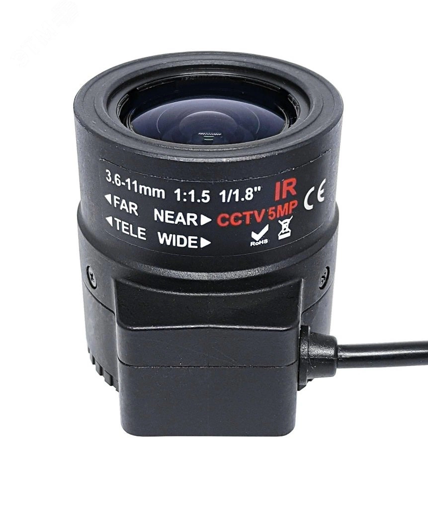 Объектив с переменным фокусным расстоянием GF-LV3611DIR 5M позволяет фокусировать изображение на матрицу камер с разрешением до 5Мп. С помощью объектива возможна настройка комфортной сцены наблюдения. А с помощью регулировки фокусного расстояния можно настроить оптимальный угол наблюдения за объектом. Автоматическая регулировка диафрагмы помогает сохранить стабильно качественное изображение в сумерках и темное время суток при работе м ИК осветителем.