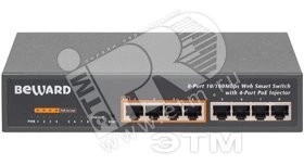 Управляемый Web/Smart коммутатор, 8 портов 10/100Мбит/с (из них 4 с поддержкой PoE IEEE 802.3af), PoE бюджет 55 Вт