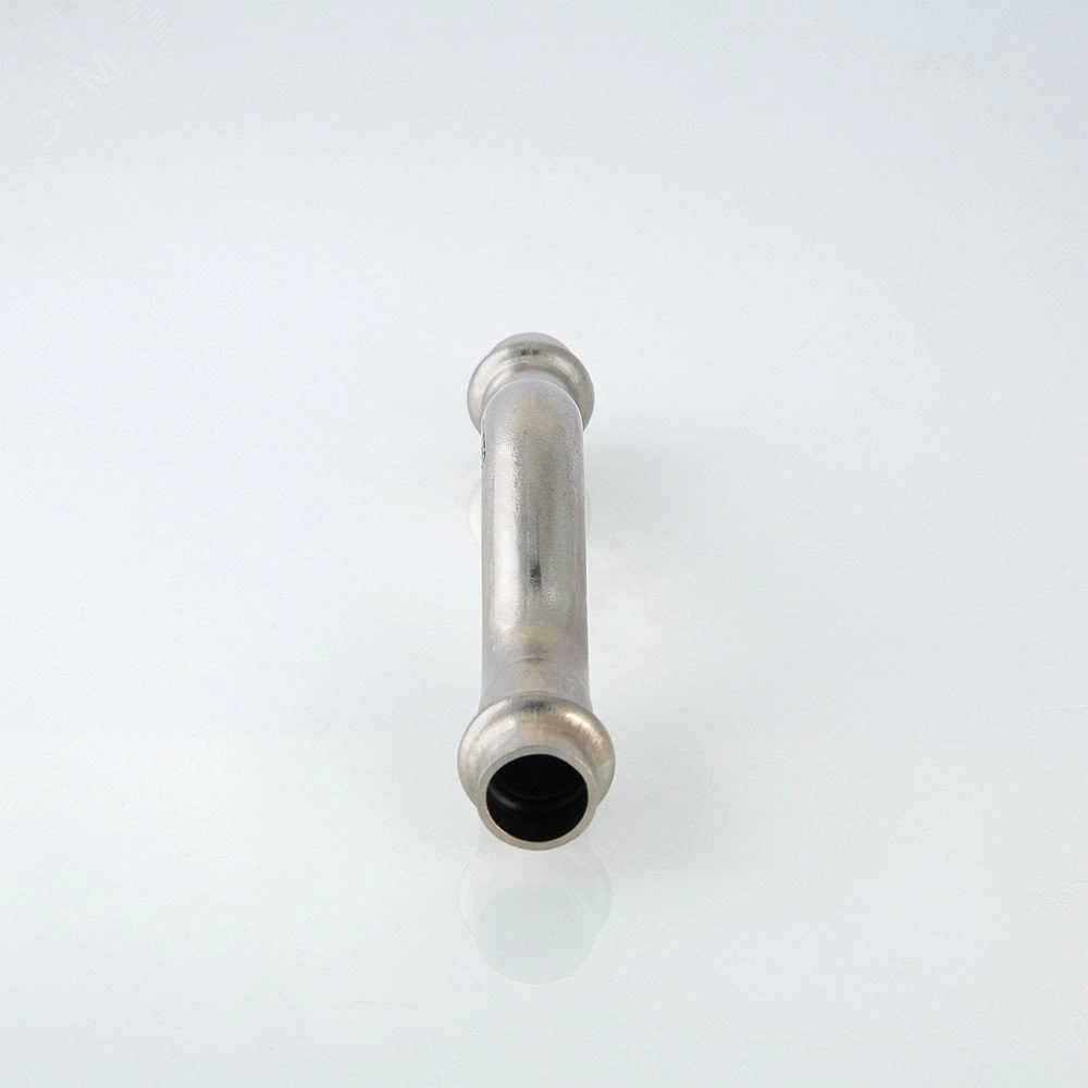 "Двухраструбный обвод из нержавеющей стали предназначен для соединения тонкостенных стальных труб в системах водоснабжения, отопления, других инженерных и технологических установках с рабочей температурой до 120 градусов. Номинальное давление - 16 бар.