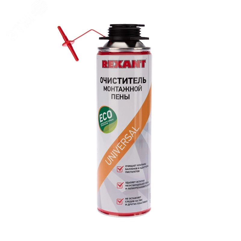 Очиститель монтажной пены REXANT используется для устранения незатвердевшей монтажной пены с оконных и дверных монтажных конструкций, рам, проемов, откосов, одежды, а также для промывки монтажных пистолетов. вес брутто 320 г.
