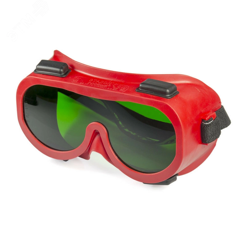 Лёгкие очки с непрямой вентиляцией в мягком корпусе из эластичного материала Evoprene и регулируемой наголовной лентой с защитным стеклом-светофильтром зелёного цвета из ацетата целлюлозы (СА) с твердым покрытием на наружной поверхности и незапотевающим покрытием на внутренней стороне, устойчивым к царапанию и истиранию, обладающим самополирующимся эффектом, антистатичностью, обеспечивающим защиту от механического повреждения высокоскоростными летящими частицами с низкоэнергетическим ударом, капель жидкостей и оптического излучения.