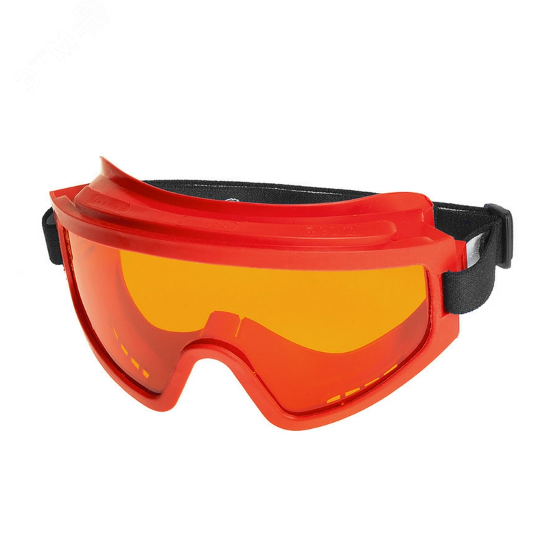 Очки с непрямой вентиляцией с панорамным защитным стеклом из поликарбоната оранжевого цвета. Мягкий корпус из Evoprene. Регулируемая наголовная лента. Обеспечивают защиту глаз от абразива, капель жидкостей (в т.ч. химических растворов), УФ-излучения, от механического повреждения высокоскоростными летящими частицами (кроме мелких частиц и пыли).