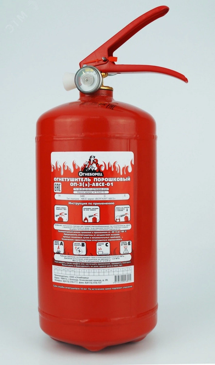 В нашем интернет-магазине вы можете купить Огнетушитель порошковый ОП3(з) АВСЕ, латунь в Екатеринбурге, артикул ОП-3 латунь. Чтобы уточнить условия оплаты, доставки и действующие скидки на товар, свяжитесь с нашим менеджером по телефону +7 (343) 266-30-88.