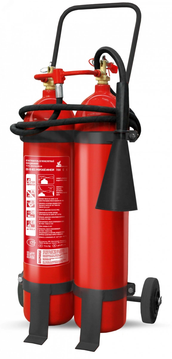 "Огнетушитель углекислотный передвижной ИНЕЙ, предназначен для оснащения органов и подразделений по чрезвычайным ситуациям, защиты объектов