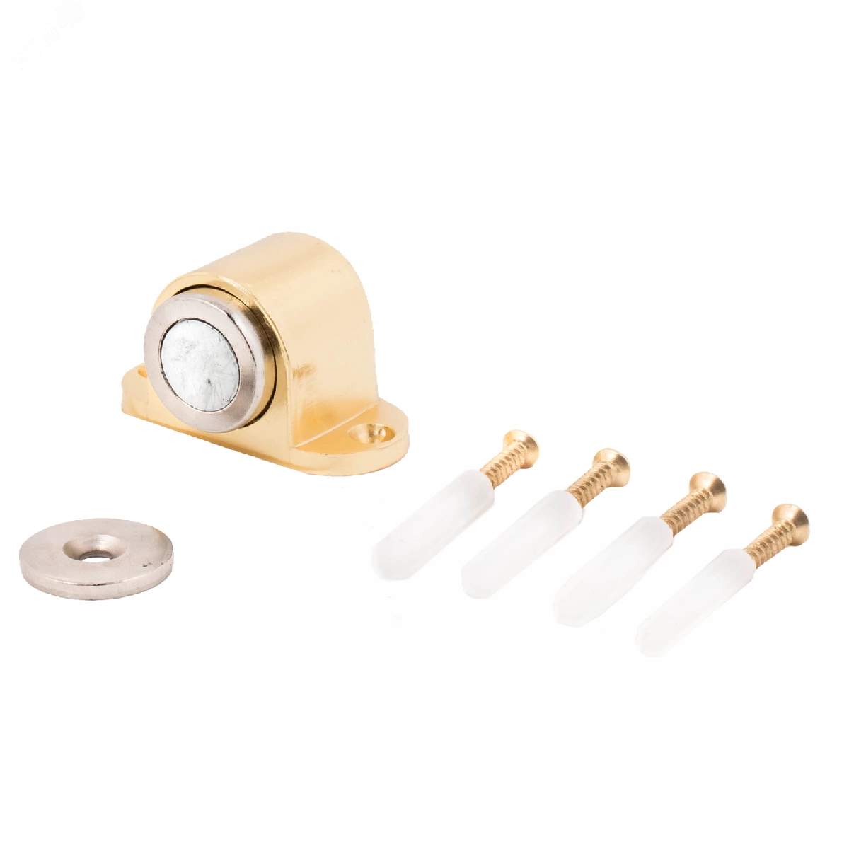 Ограничитель/упор дверной магнитный, напольный, с фиксацией . Материал - сплав ЦАМ, сталь. Гальваническое покрытие. Имеет форму пушки. Ширина основания - 52,5мм. Шурупы в комплекте.