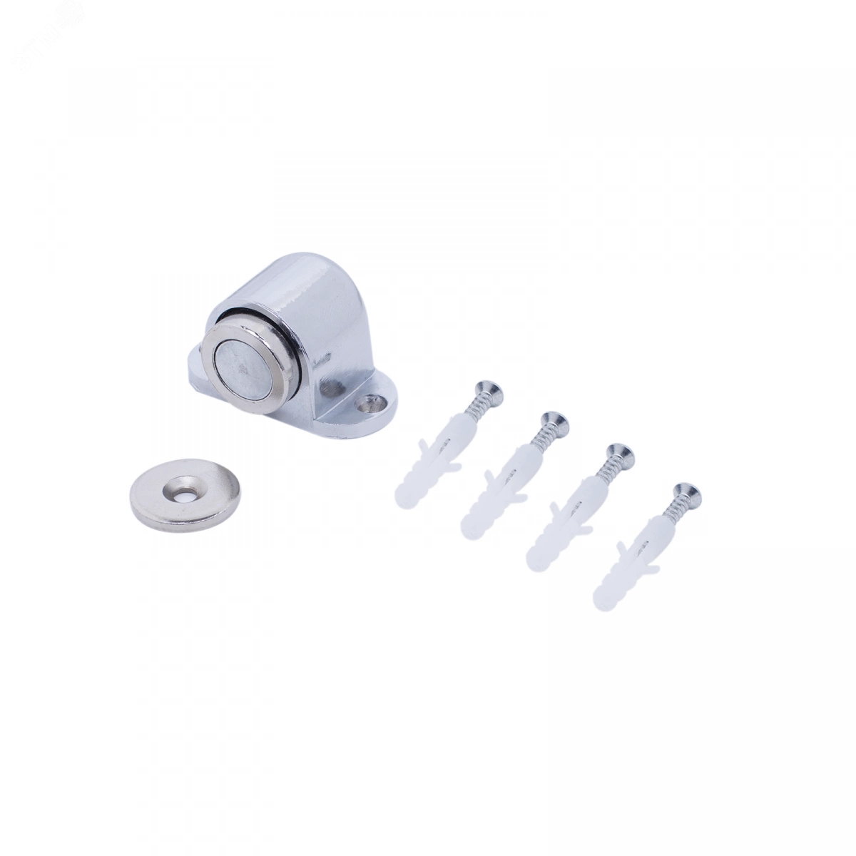 Ограничитель/упор дверной магнитный, напольный, с фиксацией . Материал - сплав ЦАМ, сталь. Гальваническое покрытие. Имеет форму пушки. Ширина основания - 52,5мм. Шурупы в комплекте.