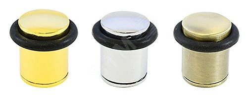 Ограничитель дверной напольный. Цилиндрическая форма. Крепежный шуруп в комплекте. Материал - сплав ЦАМ, гальваническое покрытие, резиновое кольцо.