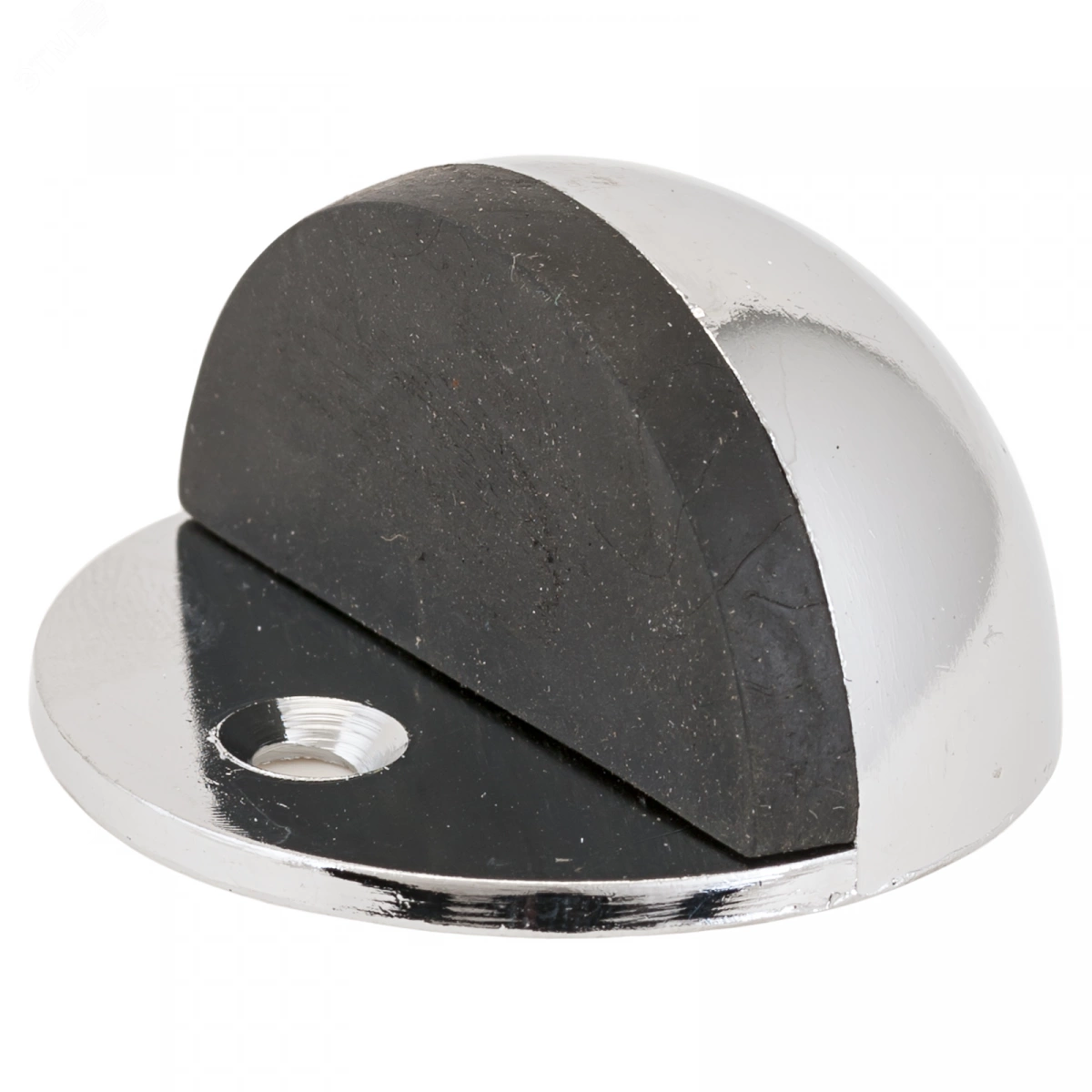 Ограничитель/упор дверной напольный. Материал - сплав ЦАМ, гальваническое покрытие, материал накладки - ПВХ. Имеет форму полусферы. Диаметр основания - 40мм. Крепеж в комплекте.