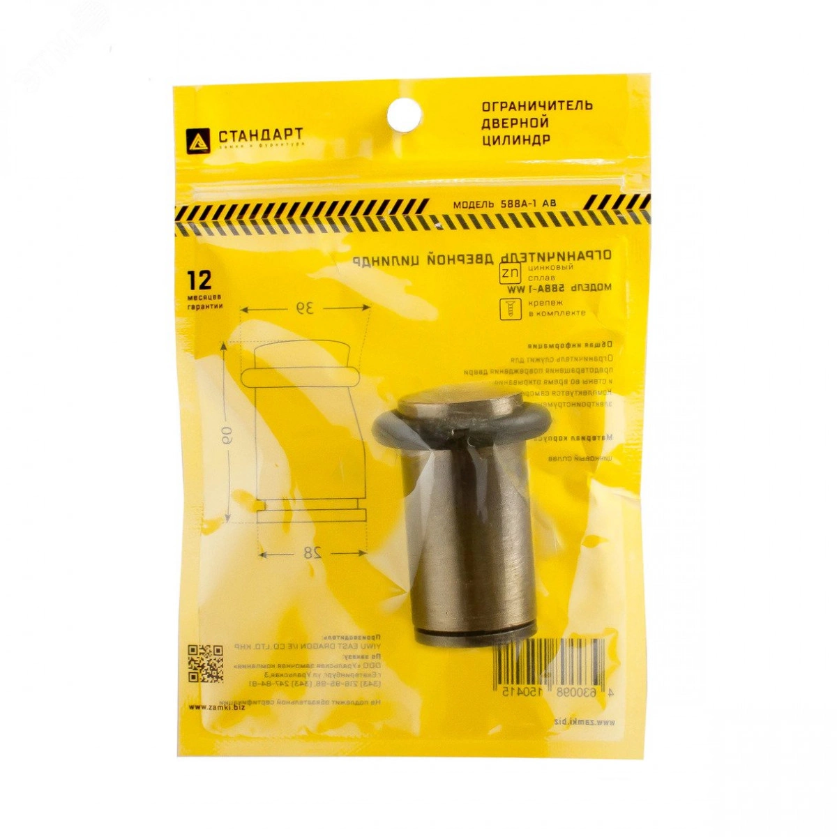 СТАНДАРТ 588А-1 AB ст.бронза ЕВРОПАКЕТ ограничитель дверной цилиндр (320,40). Ограничитель/упор дверной напольный. Материал - сплав ЦАМ, гальваническое покрытие. Цилиндрическая форма. Высота упора - 64мм, диаметр - 29мм. Шуруп в комплекте.