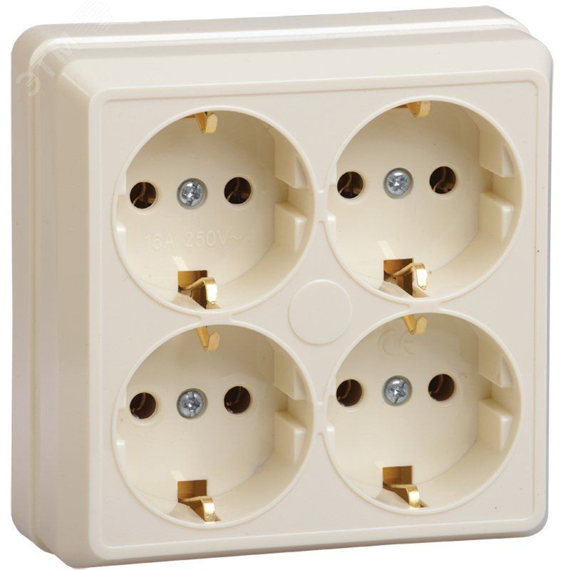 ОКТАВА Розетка 4 поста с заземлением 16А наружная кремовая