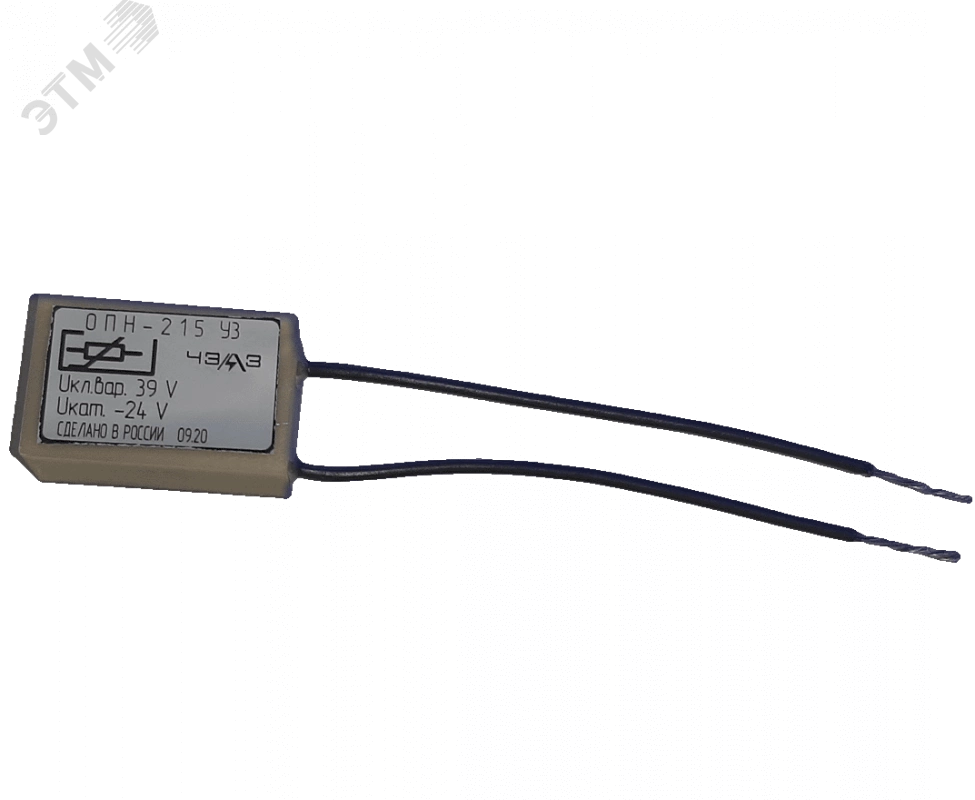 Ограничители перенапряжения ОПН-215 предназначены для ограничения коммутационных перенапряжений на катушках управления электромагнитных контакторов и пускателей. Особенностью ограничителя напряжения ОПН-215 является номинальное напряжение цепи управления 24В и исполнение 'Варистор'. Данный ограничитель перенапряжения ОПН-215 У3 используется для реле РЭП15.