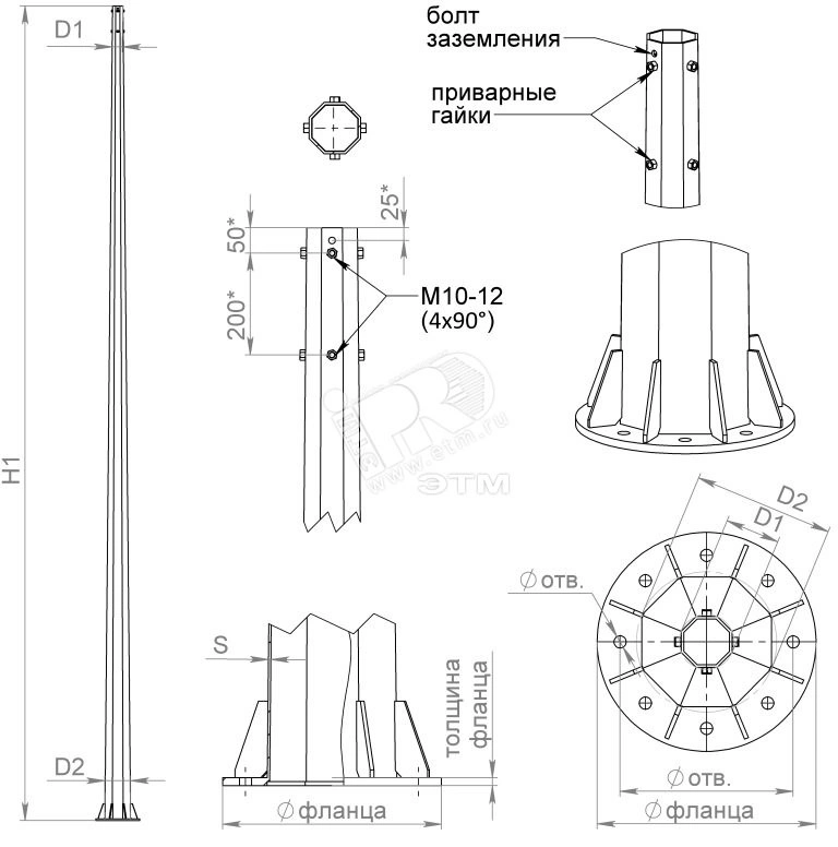 Полное описание: Опора ОГСФ-0.4-8.0 горячеоцинкованная