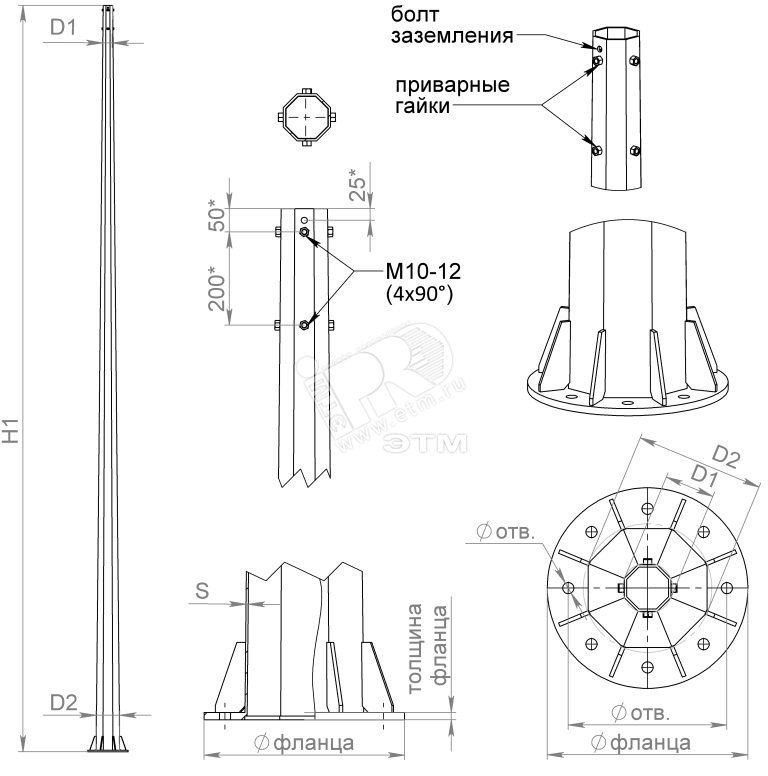 Опоры освещения в основном предназначены для установки искусственных источников света вдоль дорог, магистралей, площадей, на территории жилых комплексов, спортплощадок, автостоянок, парковых зон и многих других общественных мест, где свет необходим для безопасности или комфорта. Граненые опоры - имеют 6-8 граней, изготавливаются из листовой стали. Внутри столб полый, что позволяет беспрепятственно проводить кабель. Если по каким-то причинам подземная подводка кабеля невозможна, то используют именно силовые опоры. Данное название они получили не из-за способности держать мощные СИП, а в целях безопасности. Например, если автомобиль врежется в столб и деформирует его, то опоры, стоящие по бокам, смогут выдержать нагрузку и за сломанную конструкцию тоже.