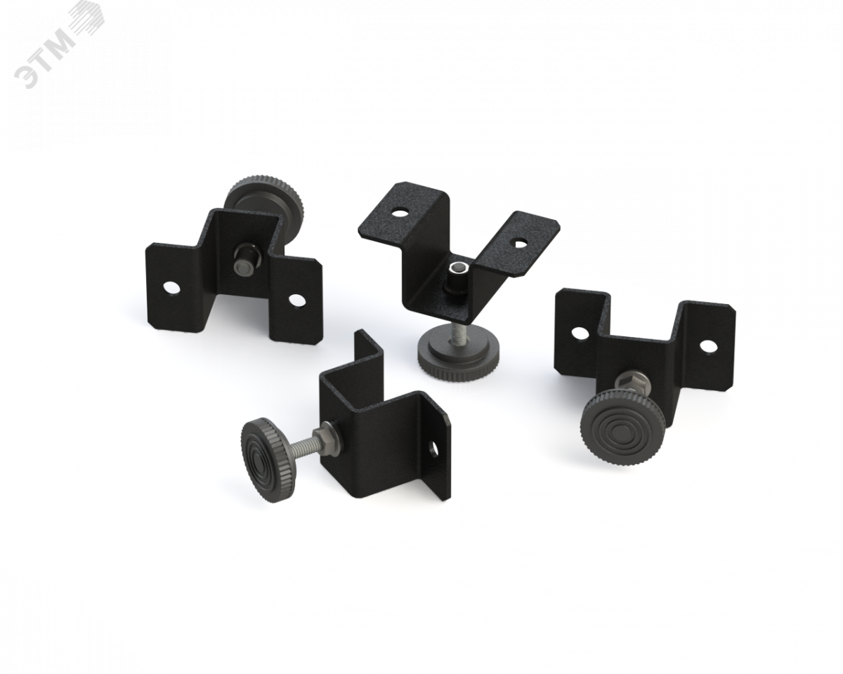 Опоры регулируемые для настенных шкафов серии TWC-R предназначены для компенсации неровностей пола и выравнивания положения шкафа при необходимости установки на пол. Опора состоит из кронштейна с резьбовым отверстием 6 мм, в которое вворачивается резьбовой стержень с с опорной чашкой. Выкручивая или закручивая резьбовой стержень можно регулировать положение ее в вертикальной плоскости. Резьбовая часть опоры выполнена из оцинкованной стали. Опорная чашка выполнена из конструкционного пластика PBT черного цвета.