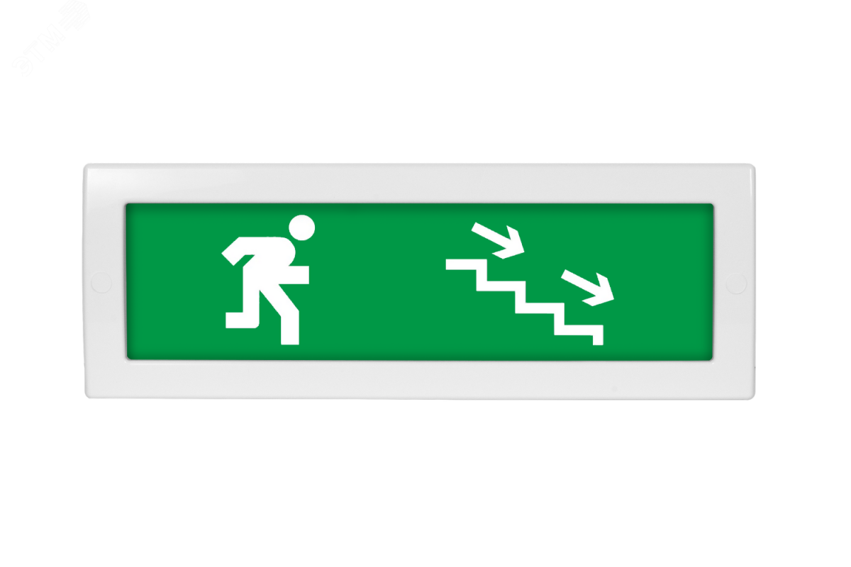 Оповещатель световой, двухстороннее исполнение с петлями для потолочного крепления Молния-2-24 Человек по лестнице вниз зеленый фон